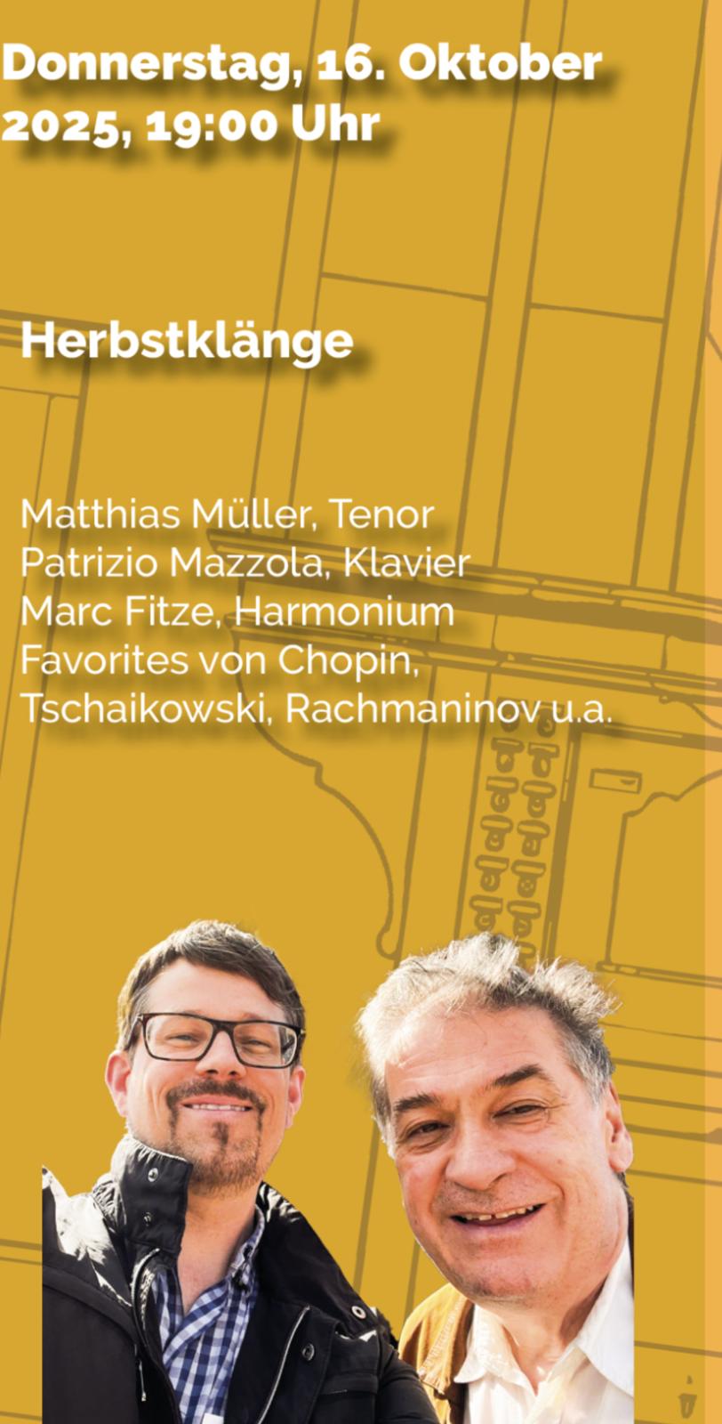 ------------x-------------- -> Freitag, 23. Mai 2025, 18:30 Uhr Musikalischer Abend Semperaula unter Mitwirkung von Patrizio Mazzola, der seine selber komponierten Paganinivariationen spielt Semperaula, ETH HG G 60, Zürich ------------x-------------- -> Dienstag, 8. April 2025, 19:30 Uhr VORTRAGSVEREIN OBERWALLIS Rittersaal Stockalperschloss Brig - Richard Wagner: Isoldes Liebestod (Klavierfassung von Franz Liszt) - Franz Liszt: Mal du pays, aus: «Années de Pèlerinage» für Klavier - Othmar Schoeck: Allegro con spirito, 3. Satz aus der Sonate für Violine und Klavier in D-Dur, op. 16 - Paul Hindemith: Praeludium und Postludium aus «Ludus tonalis» für Klavier - Darius Milhaud: Sonatine pastorale pour violon, op. 383 - Josef Garovi: Andante für Klavier - Eugen Meier: «Skizzen einer Wanderung» und «Berceuse» für Violine und Klavier - Eugen Meier: Variationen über «Weischus dü»? für Klavier ------------x-------------- -> Sonntag, 16. Februar 2025, 17 Uhr